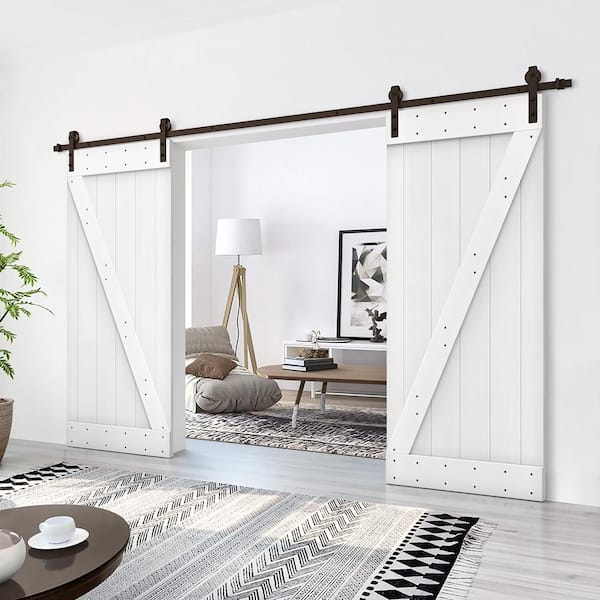 Z 92 in. x 84 in. Bar Pure White Stained DIY Solid Pine Wood Interior Double Sliding Barn Door with Hardware Kit