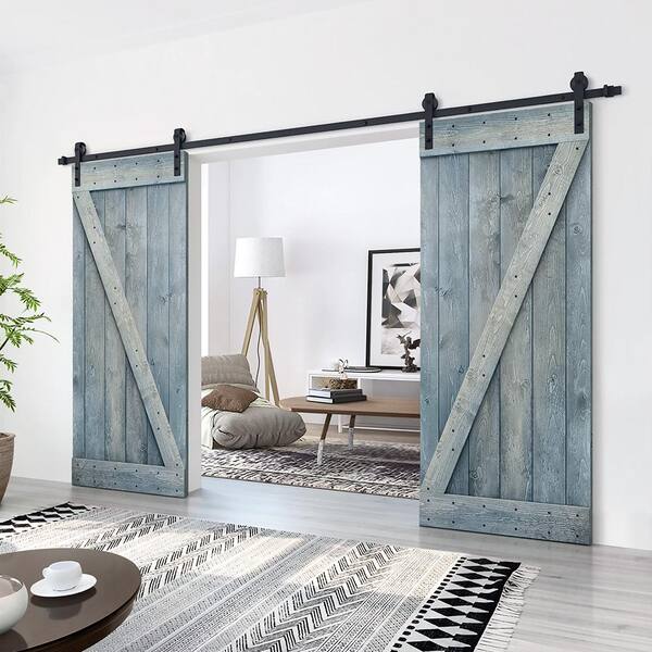 Z Bar 48 in. x 84 in. Pre-Assembled Sage Green Stained Wood Interior Double Sliding Barn Door with Hardware Kit