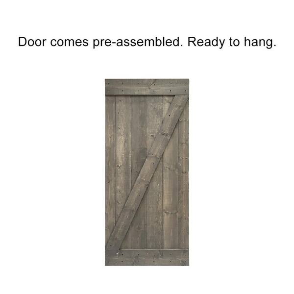 Z Bar Series 30 in. x 84 in. Pre-Assembled Weather Gray Stained Wood Interior Sliding Barn Door with Hardware Kit