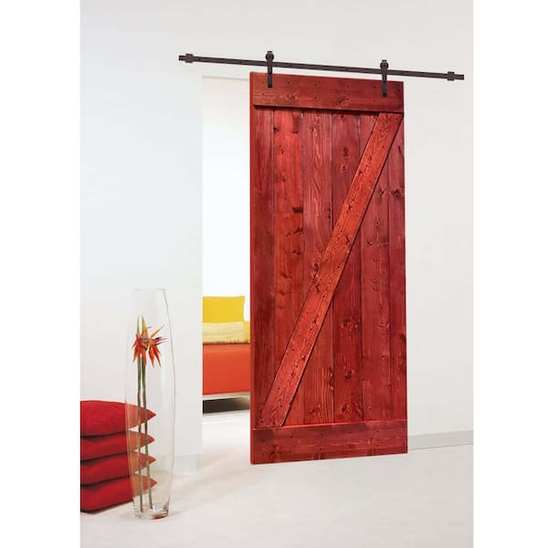 Z Bar Series 42 in. x 84 in. Pre-Assembled Cherry Red Stained Wood Interior Sliding Barn Door with Hardware Kit