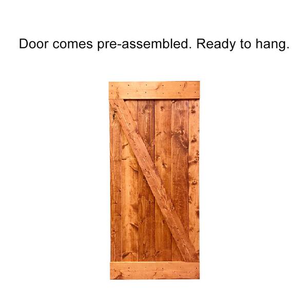 Z Bar Series 42 in. x 84 in. Pre-Assembled Red Walnut Stained Solid Pine Wood Interior Sliding Barn Door Slab