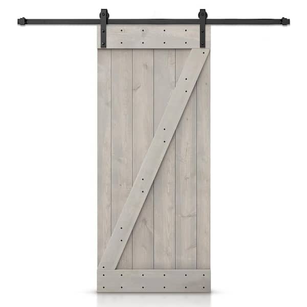 Z Series 40 in. x 84 in. Silver Gray Stained DIY Knotty Pine Wood Interior Sliding Barn Door with Hardware Kit