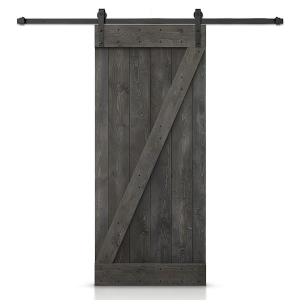 Z Series 48 in. x 84 in. Carbon Gray Stained DIY Knotty Pine Wood Interior Sliding Barn Door with Hardware Kit