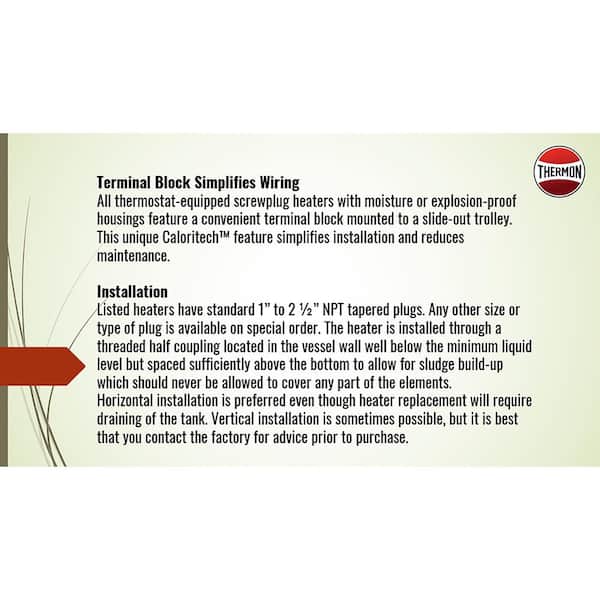 CX Series 3,412 BTU Screwplug Immersion Electric Heater, 1 in. NPT, 1 kW, 120-Volt, Moisture-Resistant Terminal Housing