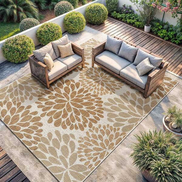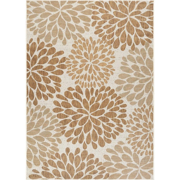 California Tropical Beige 8 ft. x 10 ft. Tropical Indoor Outdoor Area Rug
