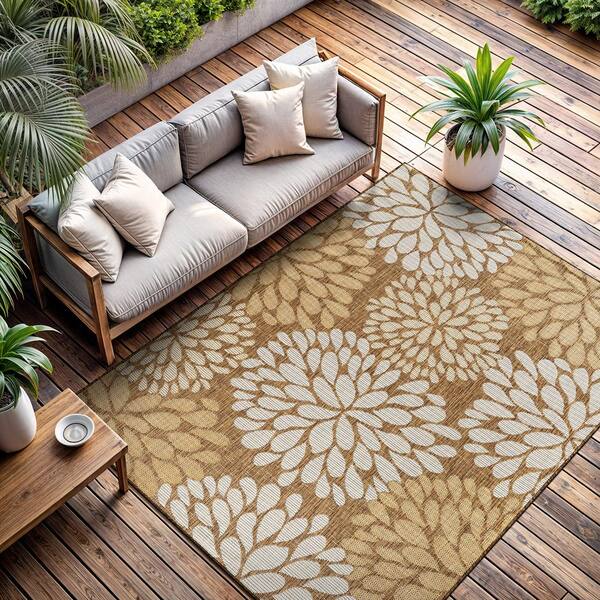 • 10x14 indoor/outdoor area rug, with a tropical style