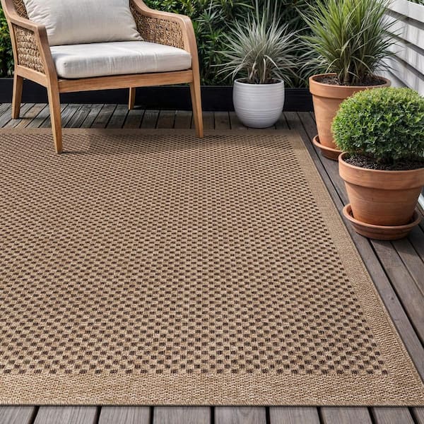 Easy Jute Dark Brown 4 ft. x 6 ft. Check Indoor Outdoor Area Rug