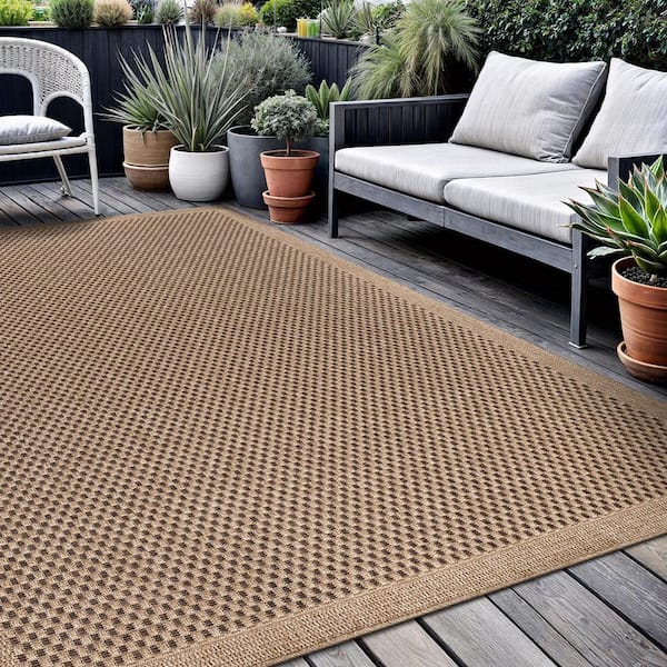 Easy Jute Dark Brown 5 ft. x 7 ft. Check Indoor Outdoor Area Rug