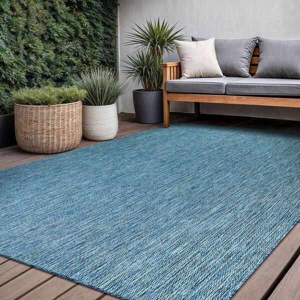Sunshine Solid Aqua 8 ft. x 10 ft. Indoor Outdoor Area Rug