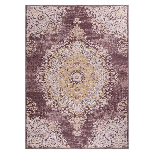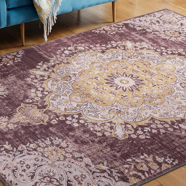 Yellow 3 ft. x 5 ft. Machine Washable Vintage Area Rug