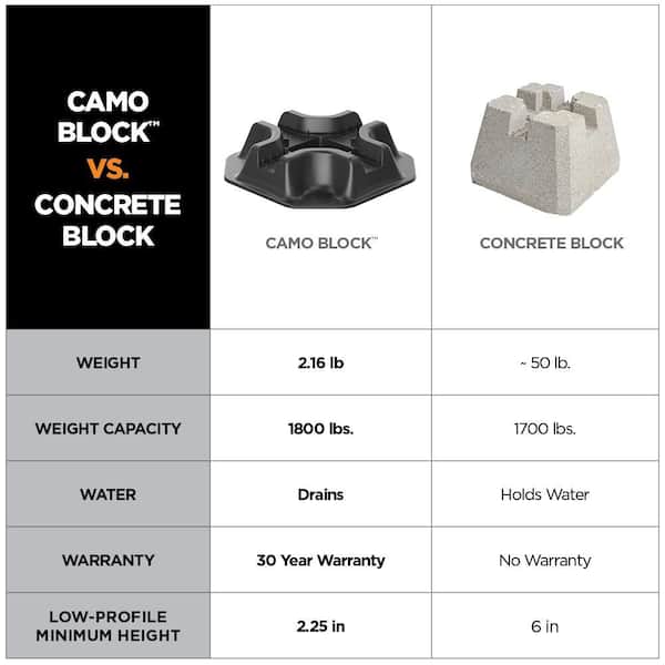 • LIGHTWEIGHT - replaces concrete deck blocks (2.16 lbs v 50 lbs)