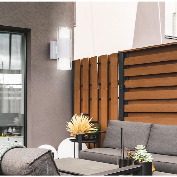 13 in. White Integrated LED Outdoor Wall Light Cylinder Sconce with 3CCT Switch, Hardwired, for Garden, Patio, Porch