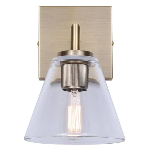 • 1-Light vanity with elegant gold finish and clear glass shade