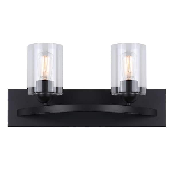 Hampton 18 in. 2-Light Matte Black Vanity Light with Clear Glass Shade