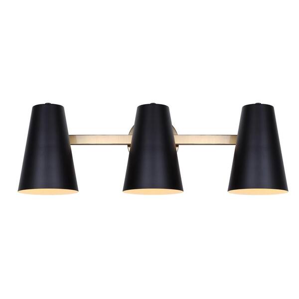 Harken 24.5 in. 3-Light Gold Vanity with Matte Black Metal Shade