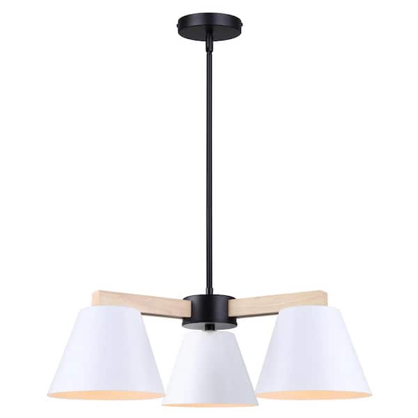 Harlyn 3 Light Matte Black, Matte White, and Wood Modern Chandelier for Dining Rooms and Living Rooms