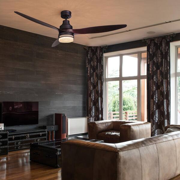 Hollyn 52 in. Integrated LED Indoor Matte Black Downrod Mount Ceiling Fan with Light Kit and Remote Control