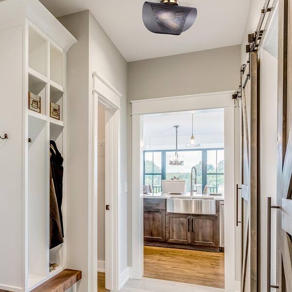 Huxlee 15 in. 2-Light 60-Watt Modern Matte Black and Gold Flush Mount with Black Mesh Shade