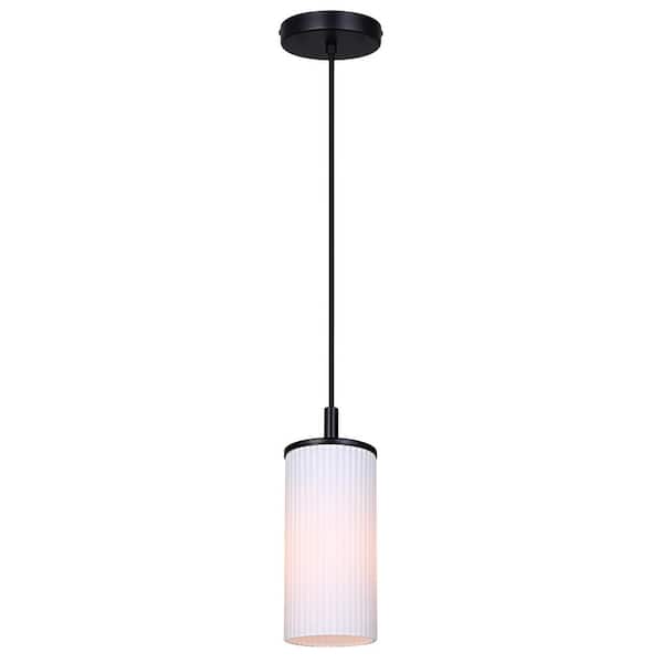 • 1-light corded pendant matte black finish and ribbed glass shade