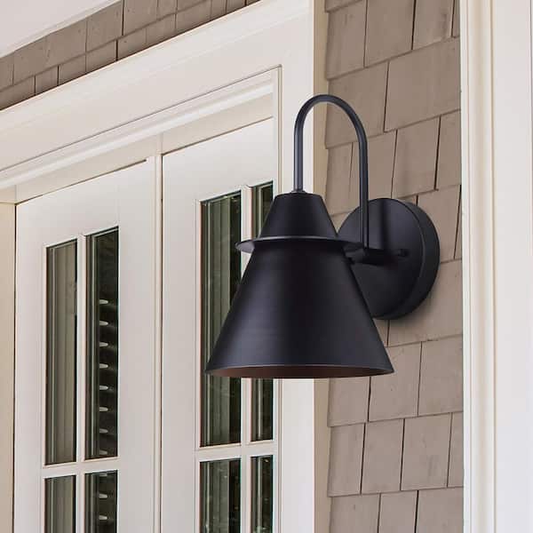 Marloe 11.5 in. H 1-Light Matte Black Hardwired Barn Wall Lantern Sconce with No Bulbs Included