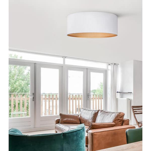 REXTON 13.875 in. 2-Light 60-Watt Contemporary Matte White Flush Mount with Matte White with Gold Metal Shade
