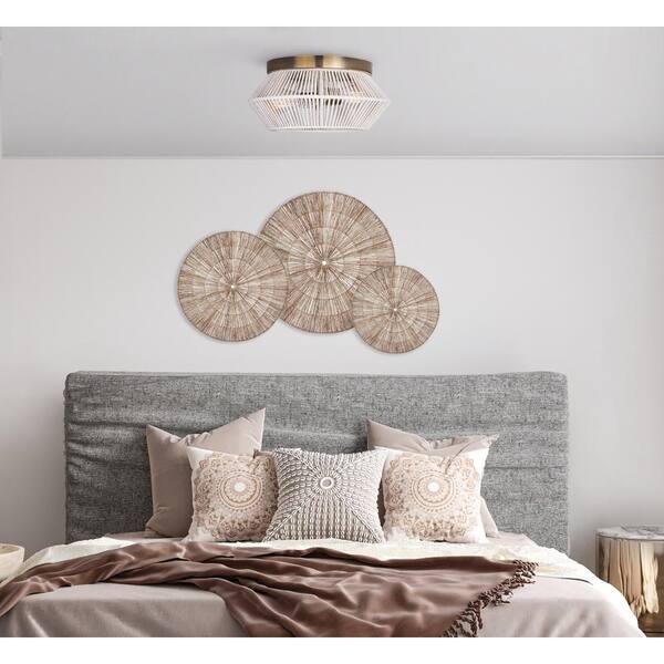 Willow 13 in. 2-Light 60-Watt Modern Gold Flush Mount with White String Shade