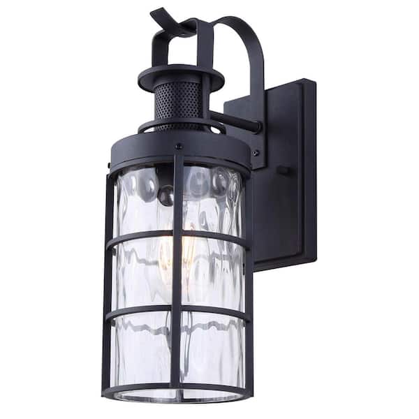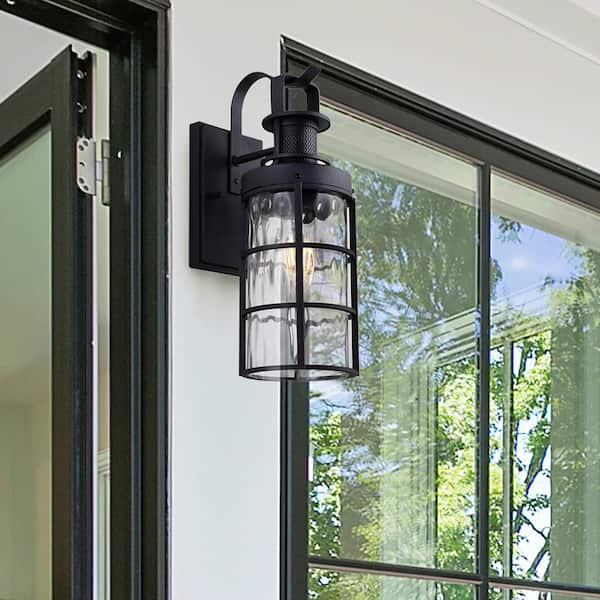 Winslet 14.625 in. Black Outdoor Hardwired Wall Lantern Sconce with No Bulbs Included