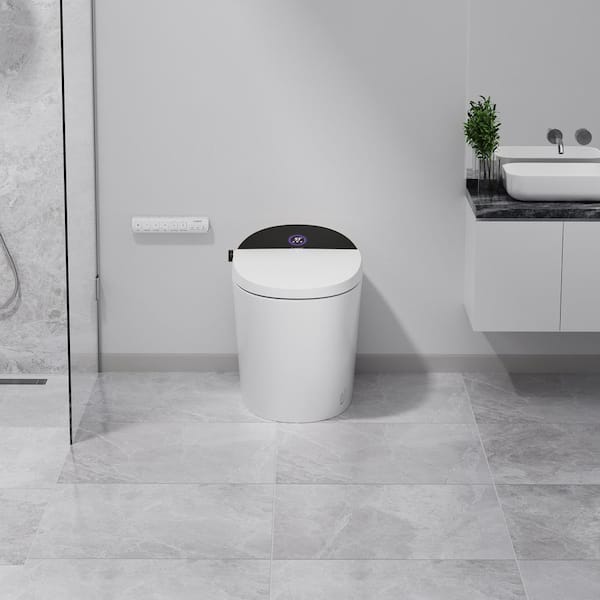 Elongated Electric Bidet Toilet 1.08/1.45 GPF Dual Flush in White with Foot Sensor, Auto Flush