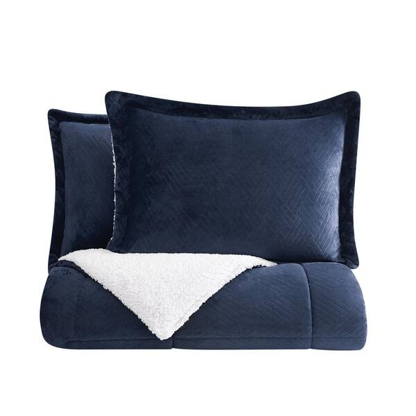 Carved Faux Fur Polyester Blue Full/Queen 3 Piece Comforter Set