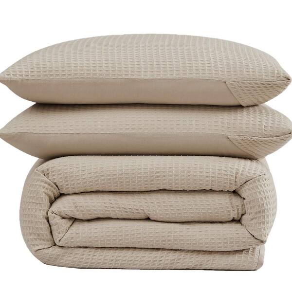 Heritage Cotton Waffle Khaki 2 Piece Twin/Twin XL Comforter Set