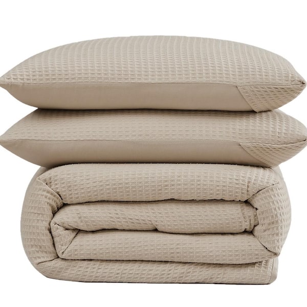 Heritage Cotton Waffle Khaki 3 Piece Full/Queen Comforter Set