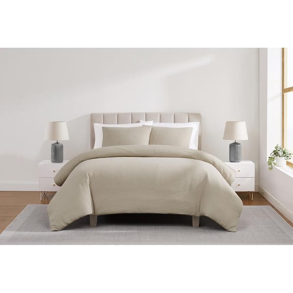Heritage Cotton Waffle Khaki 3-Piece King Duvet Set