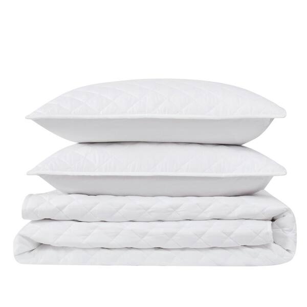 Solid Oversized Percale Cotton White King 3 Piece Quilt Set