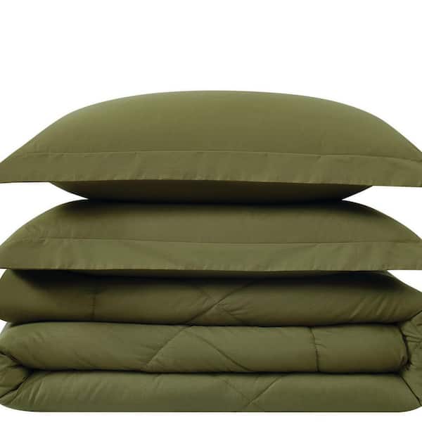 Solid Oversized Percale Olive Green King 3 Piece Cotton Comforter Set