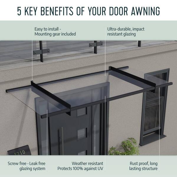 Bordeaux 5 ft. x 22 ft. White/Clear Door and Window Fixed Awning