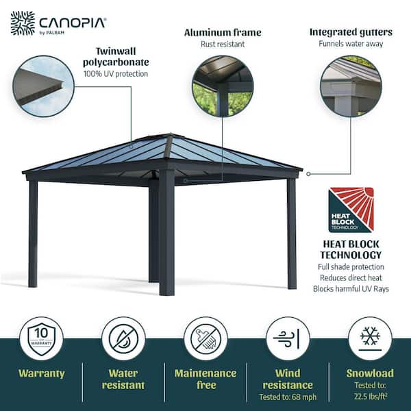 • Hardtop gazebo is completely opaque with full UV protection