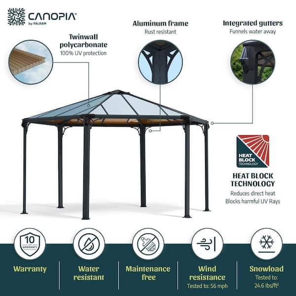 • Hexagonal aluminum gazebo has screw free roof for seamless look