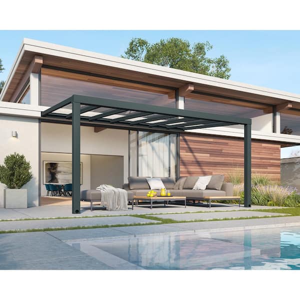 Stockholm 11 ft. x 17 ft. Gray/Clear Aluminum Patio Cover