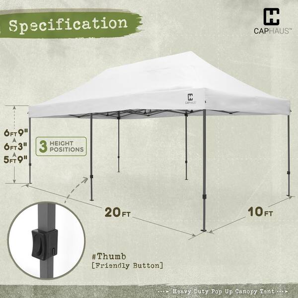 10 ft. x 20 ft. White Patented Easy Pop Up Outdoor Canopy Tent, Heavy-Duty Commercial Grade