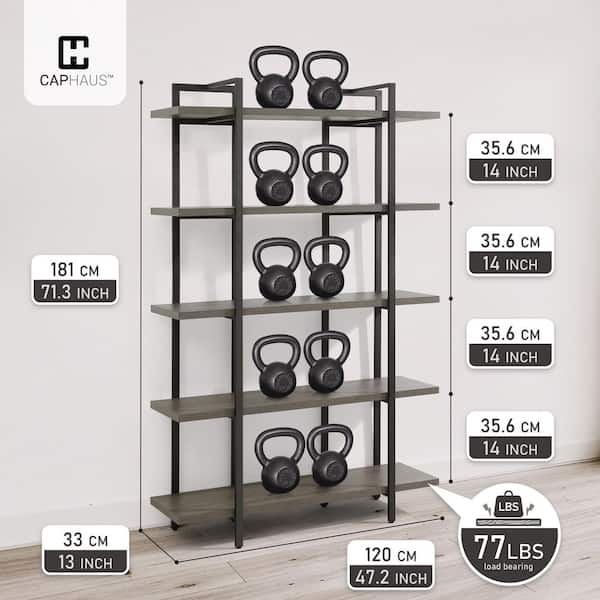 71 in. Tall Dark Grey Engineered Wood 5-Shelf Bookcase with Open Display Shelves