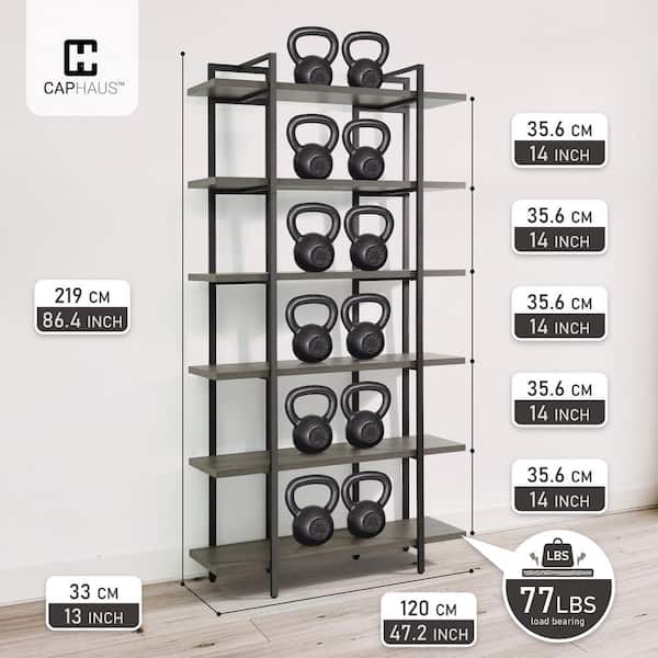 86 in. Tall Dark Grey Engineered Wood 6-Shelf Bookcase with Open Display Shelves