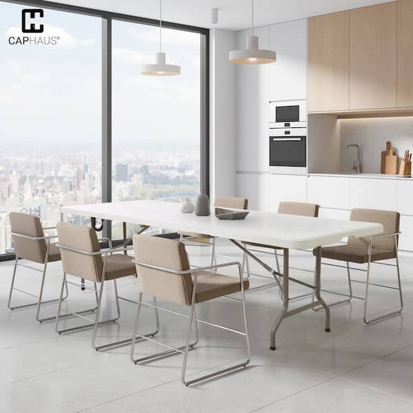 96.1 in. Gray Rectangle Steel Frame White Plastic Foldable Picnic Table