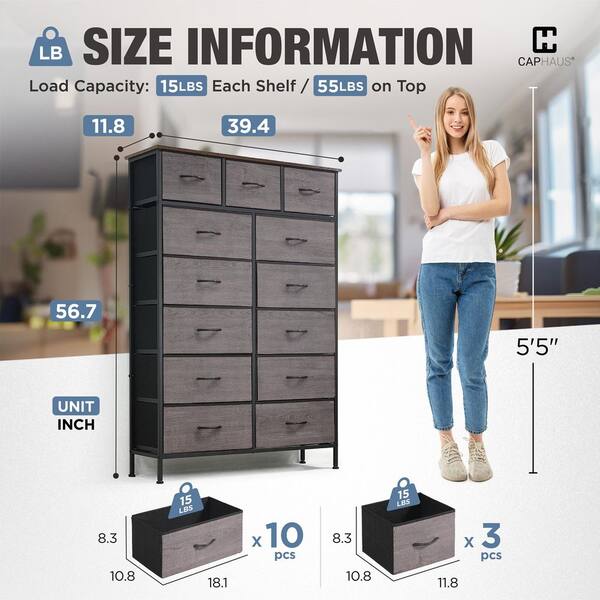 Grey Oak 13 Drawer 39.4 in. Wide Dresser