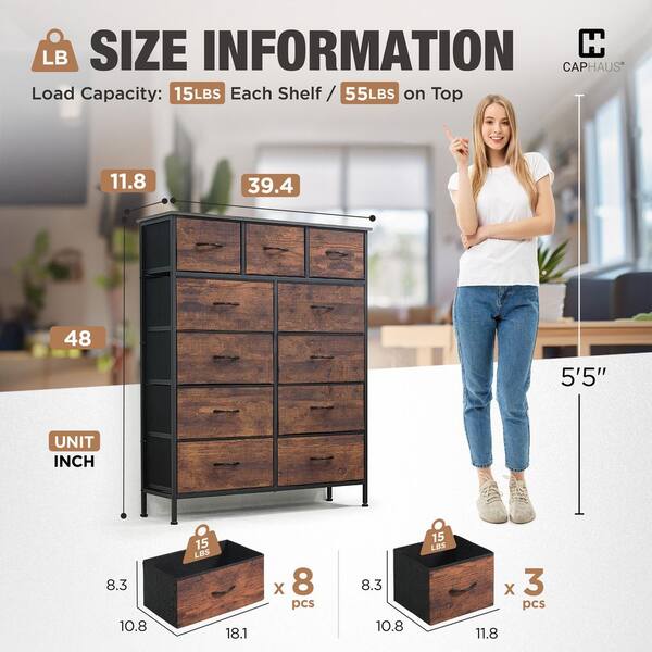 Rustic Oak 11 Drawer 39.4 in. Wide Dresser