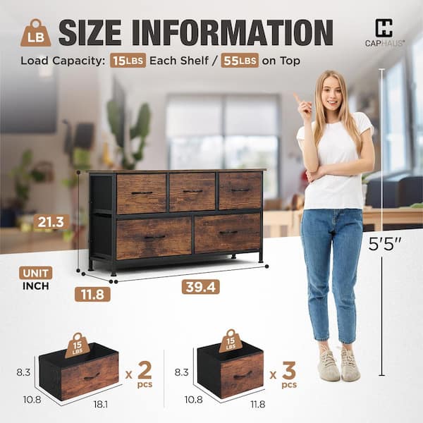 Rustic Oak 5 Drawer 39.4 in. Wide Dresser