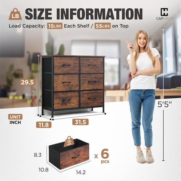 Rustic Oak 6-Drawer 31.5 in. Wide Dresser