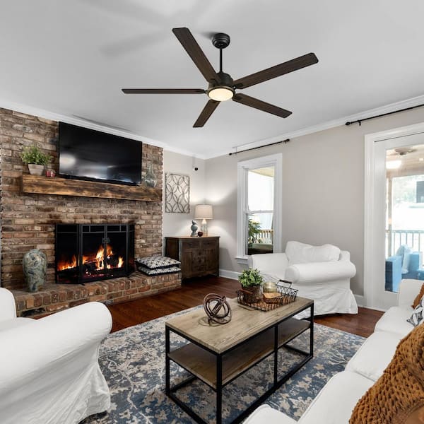 Essex 56 in. Dimmable LED Indoor/Outdoor Black Smart Ceiling Fan with Light and Remote, Works with Alexa/Google Home