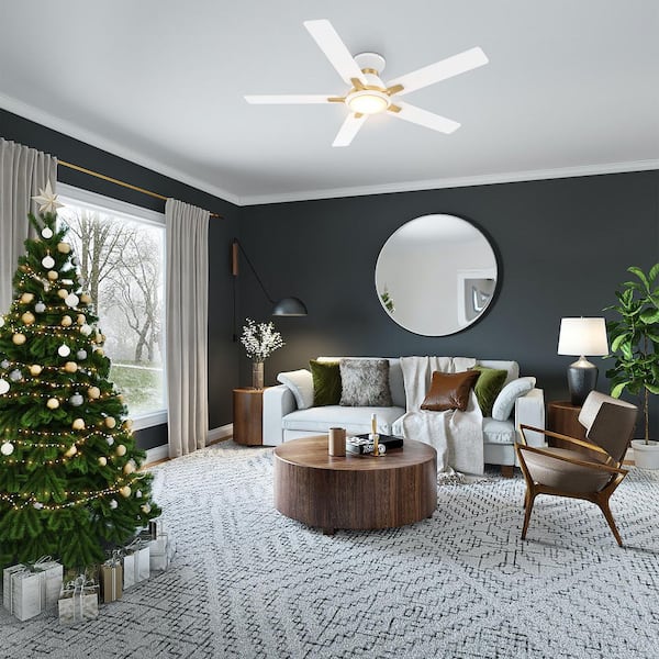 Essex II 52 in. Integrated LED Indoor/Outdoor White Smart Ceiling Fan with Light and Remote, Works w/Alexa/Google Home