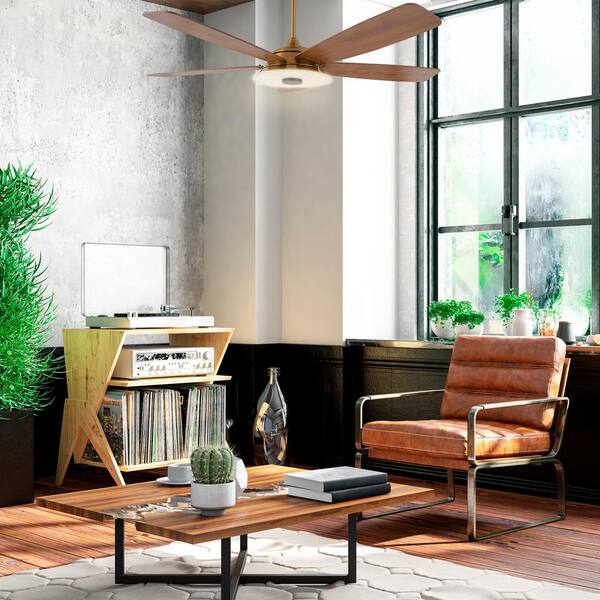 Hardley 52 in. Integrated LED Indoor/Outdoor Gold Smart Ceiling Fan with Light and Remote, Works with Alexa/Google Home