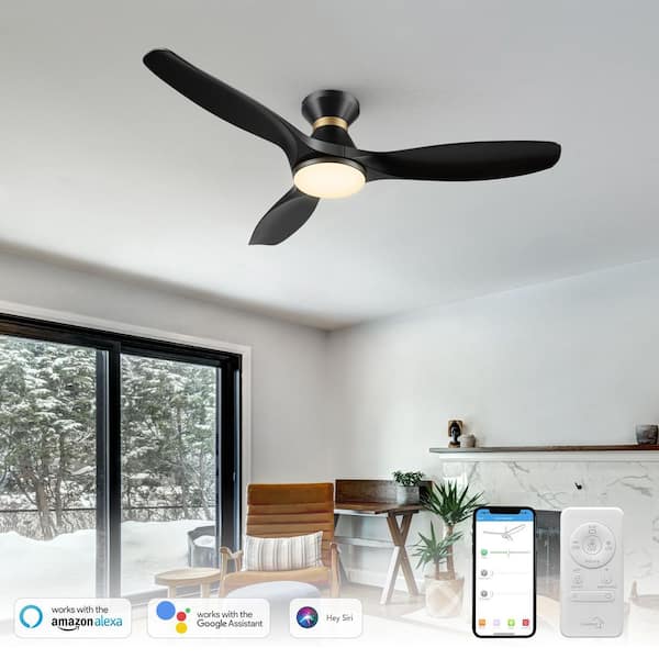 Kore 52 in. Integrated LED Indoor Black Smart Ceiling Fan with Light and Remote, Works with Alexa and Google Home